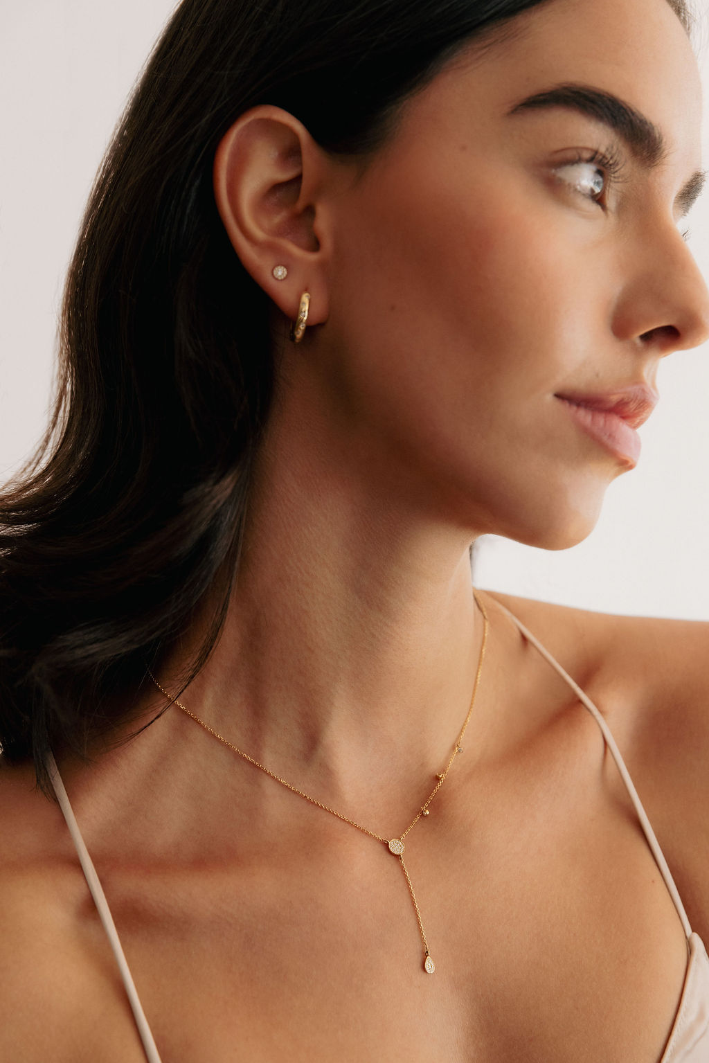 Diamond necklace in 18kt gold, set with 33 round/brilliant cut natural diamonds.